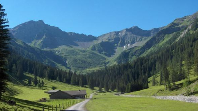 Ansonsten steigen wir links in Serpentinen durch den Wald zur Gafadurahütte hinunter.