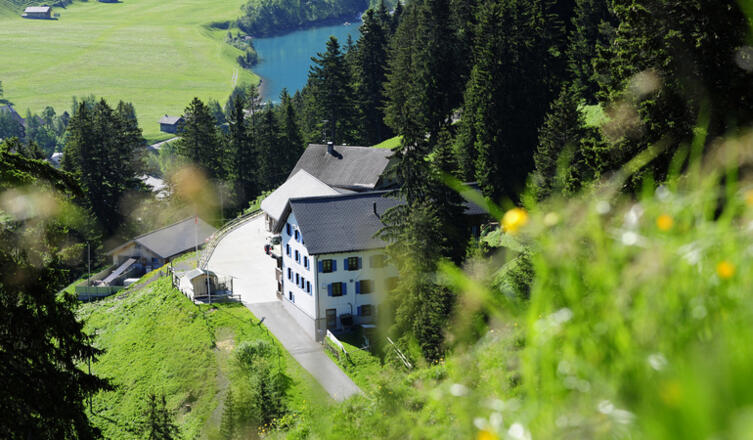 Von der Pfälzer Hütte gelangen wir in westlicher Richtung entweder auf einem Fahrweg über die Alpe Gritsch oder auf einem steilen Fußweg in den Bereich der Alpe Obersäss. Von dort folgen wir zunächst einem Steig und später einem Zufahrtsweg – hoch über dem Saminatal – zum Berggasthof Sücka, welcher direkt über dem Tunnel der Hauptstraße Vaduz – Steg liegt. Von hier gelangen wir durch lichten Föhren- und Lärchenwald nach Silum.