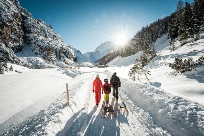 Wunderschöner, naturnaher Winterwanderweg im wildromantischen Pinnistal.