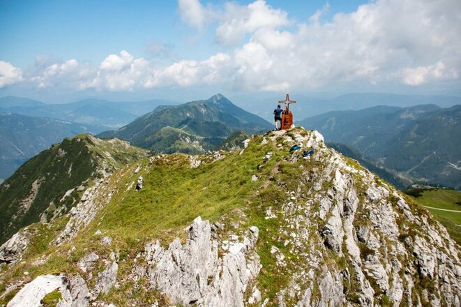Von der Gamskogelhütte geht es los Richtung erstem Gipfel, der Arche. Unterhalb des "Jägersprunges" queren Sie die weltberühmte Weltcupstrecke Zauchensee, genau dort, wo im Winter die Weltbesten Ski-Rennläuferinnen mit über 100km/h über den Sprung rasen und erst 30-40m weiter unten wieder aufsetzen. Weiter gehts den ersten Anstieg hinauf Richtung Seekarscharte. Kurz vor dem Seekarkessel zweigen Sie rechts ab, hinauf zur Arche auf 2.060m dem 1. Gipfel der Tour mit wunderschönem Ausblick bis hinunter nach Zauchensee. (Gehzeit Gamskogelhütte bis zur Arche: ca. 45-60min)