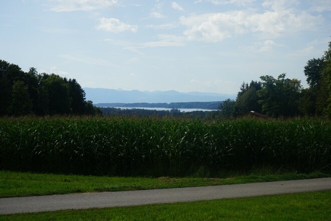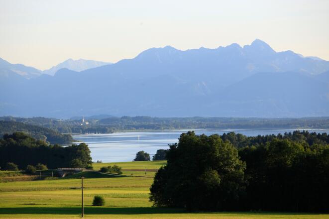 Es handelt sich um den Wanderweg Nr. 10. Alle Wanderwege sind ab der Wandertafel am Parkhaus der Chiemgau Thermen ausgeschildert. Über Bergham laufen Sie zum Simssee und genießen den Ausblick auf den See mit den dahinterliegenden Chiemgauer Alpen.