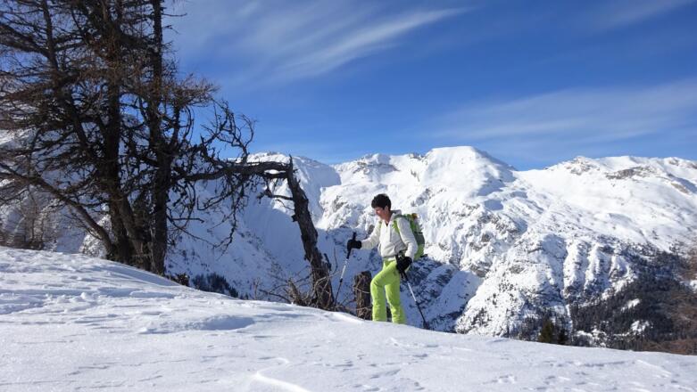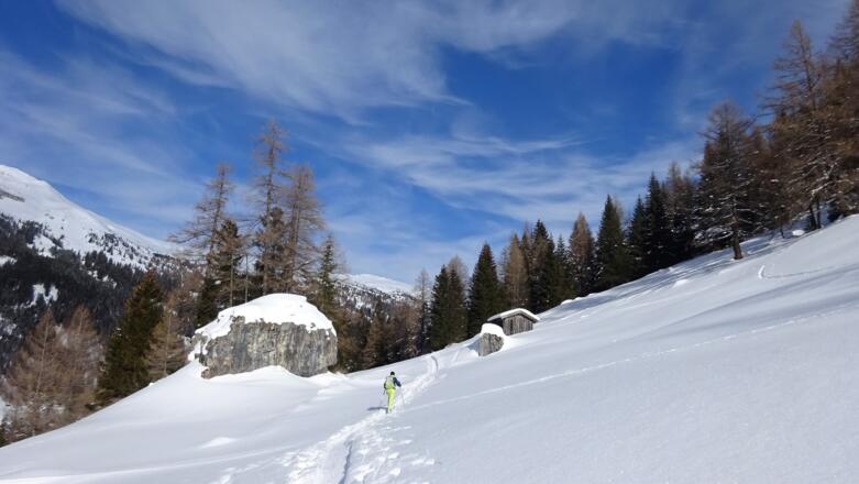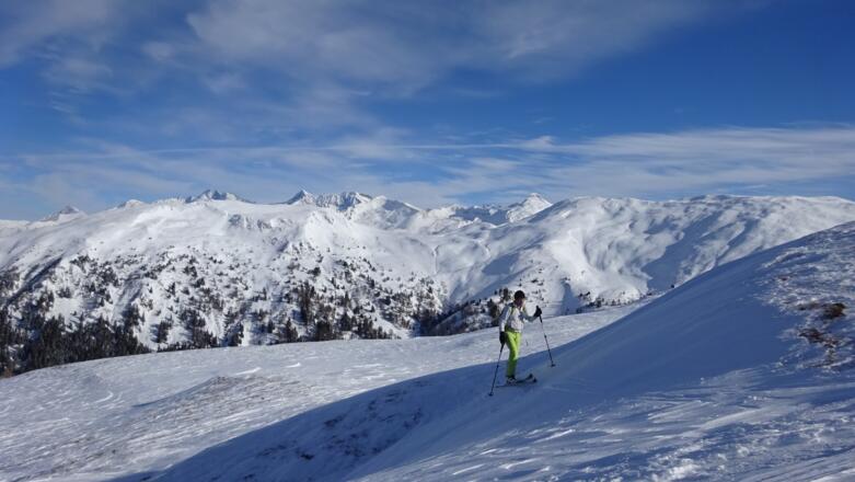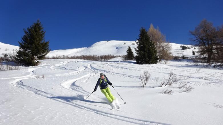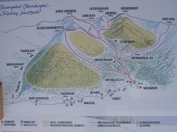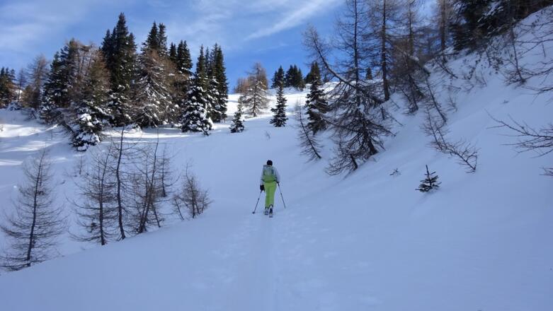 Für die Abfahrt bieten sich mehrere Möglichkeiten an, die herrlichen Hänge zum Obernbergersee zu nützen.