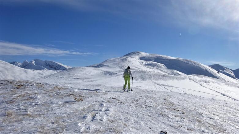 Zum Start muss ein steiler, dichter Waldgürtel überwunden werden, bevor sich der Wald lichtet und ein breiter Rücken, der zum Gipfel führt, erreicht wird.