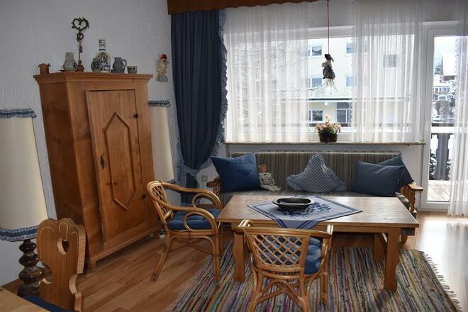 Die schöne 3-Zimmer-Wohnung hat eine Wohnfläche von ca. 70 m². Auf dem Südbalkon können Sie das wunderschöne Bergpanorama bewundern. Der Wohn- Essbereich ist im im ländlichen Stil eingerichtet. Die Küchenzeile ist vollausgestattet. Die Wohnung verfügt über zwei Schlafzimmer. Davon verfügt eines der Zimmer über einen weiteren Balkon. Ausgestattet ist die Wohnung mit zwei Badezimmern. Eins der Bäder ist mit Badewanne und WC ausgestattet. Das zweite Bad besitzt eine Dusche und WC. Stellplätze vor dem Haus. Die Wohnung ist mit WLAN ausgestattet. Im Haus befindet siche ein Fahrstuhl. Stellplätze vor dem Haus.SonstigesBei Übernachtungen unter 6 Nächten fällt ein Kurzzeitzuschlag an. In der Hauptsaison haben wir einen Mindestaufenthalt, Aufenthalte unter 7 Nächten nur auf Anfrage. Die Buchungsgebühr beträgt 12 Euro