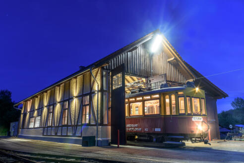 Historisches denkmalgeschütztes ehemaliges Bahnhofsgebäude der Florianerbahn