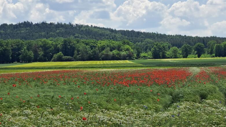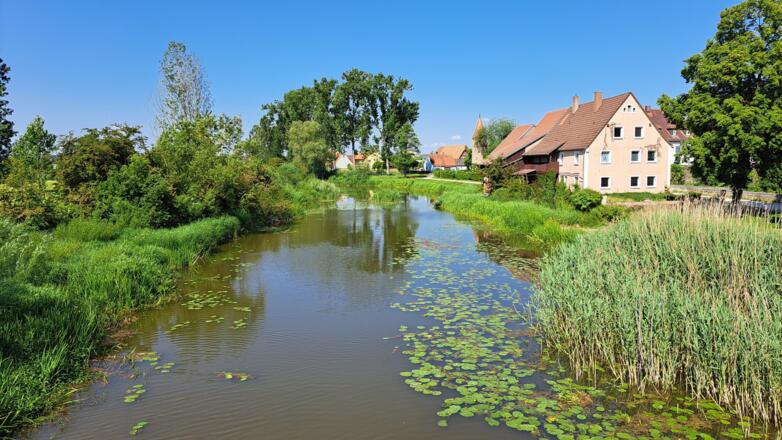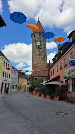 Im Zentrum an der Ansbacher Promenade folgen wir der Markierung Ansbacher Weg. Auf Asphaltstraßen und Schotterwegen ansteigend nach Elpersdorf, bis hierher der größte Anstieg des Tages. Über Hohenberg kommen wir nach Herrieden, wo wir kurz danach wieder auf die Altmühl treffen. Am Altmühltalradweg radeln wir weiter nach Leutenbuch, Großenried, Mörlach, Ornbau, wo wir kurz danach der breiten Altmühlzuleitung folgen, die in den Altmühlsee mündet. Wir radeln entlang des linken Seeufers weiter. Es besteht die Möglichkeit die Vogelinsel (barrierefrei) zu besuchen oder auch entlang der rechten Seeseite zu fahren. Einkehrmöglichkeit am Campingplatz oder in der hübschen Stadt Gunzenhausen. Der Radweg führt nun ab Aha entlang einer Bahnstrecke nach Windsfeld, einige km nach Ehlheim biegen wir links in die Straße nach Trommetsheim ein. Im enger werdenden Tal gibt es schöne Aussichtspunkte auf die Fränkische Alb. Weiter geht es nach Kattenhochstatt und Holzingen zum Etappenziel nach Weißenburg.