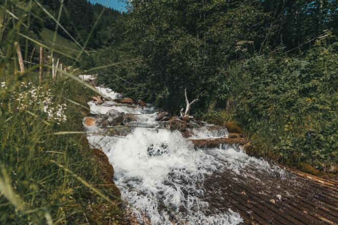Der Aquaweg macht sichtbar, wie wasserreich die Region ist und wie vielfältig der Lebensspender aus den Bergen genutzt wird. Vom Lünerseewerk in Latschau geht es sanft bergauf zum Rasafeibach. Der sonnig-schattige Weg führt am Fuße der Mittagsspitze entlang durch Wald und Wiese. Es bieten sich traumhafte Blicke nach Schruns und auf's Hochjoch.