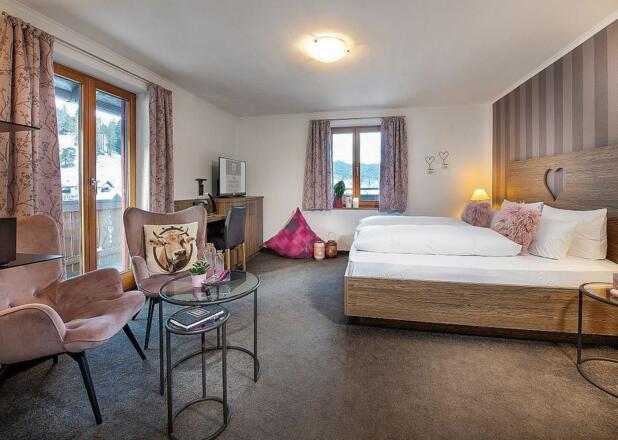 Das 4 * Hotel garni & Apartments - Adults only - liegt erhaben auf einer kleinen Anhöhe im Zentrum von Grainau, mit freiem Bergblick auf das gesamte Zugspitzmassiv. Die liebevoll eingerichteten Zimmer & Suite, Apartments die vielen herzlichen Details und die famliäre Atmosphäre werden Sie schon vom ersten Moment an begeistern. Genießen Sie den einmaligen Panorama Blick vom Zimmer aus und starten Sie Ihre Wanderungen direkt vor der Hoteltür, z.B. zur Höllentalklamm, zum Eibsee,... Nach einem ereignisreichen Tag, entspannen Sie in unserer Indoor Wellness- Alpen Oase mit Sauna, Aroma-Dampfbad, Infrarotwärme, Wasserbetten Ruheraum, Vitaminecke & Zirben Quellwasser... und NEU in unserer Outdoor Oase ist ein Naturpool mit Liegewiese und Bergblick.