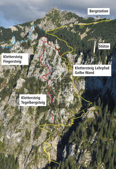 Ein neu angelegter Klettersteig-Lehrpfad dient als "roter Faden" für ein modernes Ausbildungskonzept am Berg. Hier werden das richtige Verhalten und richtige Sichern im Klettersteig ebenso angesprochen wie alpine Gefahren. Der Gelbe-Wand-Weg eignet sich - unter Anleitung professioneller Bergführer - auch hervorragend für "Erlebnis-Pädagogik" und "Therapie-Klettern" - neue Ansätze im Bereich der Jugend- und Sozialarbeit.
