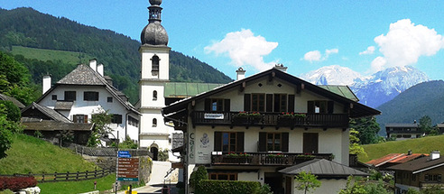 Unser familiär geführtes Bergsteigercafé ist mitten in Ramsau bei der weltbekannten Kirche Sankt Sebastian.