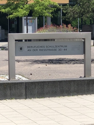 Das Berufsschulzentrum in der Riesstrasse vereint die Berufsschulen für Medienberufe, Informationstechnik, Bürokommunikation und Industriekaufleute, Einzelhandel und für Steuern. Durch den Bau des Gebäudes wurden also 5 Ausbildungsstätte zusammengeführt. Ziel des Baus war es, die Berufsschulen zu vereinen und sie dennoch einzeln erkennbar zu machen. Das Architektenbüro Bauer, Kurz, Stockburger erarbeitete drei Entwürfe für die Umsetzung der Vorgaben und am 19. Juni 2002 wurde die von den beteiligten Referaten favorisierte Variante vom Stadtrat genehmigt. Der Aufbau der fünf Gebäude ist wie ein Kamm gegliedert: Sie stehen parallel zueinander, wie die Zacken eines Kamms und sind am oberen Ende miteinander verbunden. Ein bewusst gewählter Kontrast stellt die Aula und Mensa dar, diese befindet sich in einem oval gestalteten Gebäude neben dem Pausenhof. Am 15. Oktober 2004 wurde der Grundstein für das Gebäude gelegt und drei Jahre später, im Schuljahr 2007/8 wurde der Bau fertig gestellt.