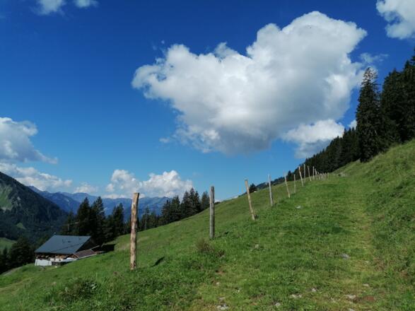 Ausgehend vom Parkplatz Schönenbach wandert man über die Kretzbodenalpe und die Hintereggalpen auf die Sienspitze. Die Gehzeit beträgt ca. 1,5 - 2 Stunden und es sind 570 Höhenmeter zu erklimmen. Der Aufstieg wird jedoch mit einem schönen Ausblick in die Bergwelt des Bregenzerwaldes und hinunter nach Schönenbach belohnt.