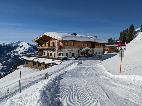 Von der Talstation der Bichlalm fahren Sie mit dem Doppelsessellift bequem zur Bergstation auf knapp 1.600 Meter. Das Bichlalm Gebiet befindet sich in einer exponierten Lage abseits des regulären Skibetriebes und ist vor allem bei Skitourengeher und Freeridern bekannt und beliebt. Direkt neben dem Ausstieg des Sesselliftes befindet sich das Berggasthof Bichlalm, wo sich der Start der Winterwanderung befindet. Folgen Sie der markierten Route in Richtung Stuckkogel. Am Weg hinauf sollten sie immer wieder über ihre Schulter schauen und die Aussicht auf die Kitzbüheler Südberge, die Resterhöhe und den Pengelstein genießen. Nach einer Gehzeit von gut einer Stunde erreichen Sie den Gipfel des Stuckkogel auf 1.888 Meter, wo Sie einen herrlichen Rundumblick genießen. Am gleichen Weg geht es wieder zurück zur Bichlalm, die zu einem ausgedehnten Einkehrschwung einlädt, bevor Sie der Bichlalm Sessellift bequem zurück ins Tal bringt.