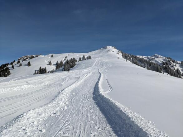 Hinweis: Wer bei jeder Schneelage und Wegbeschaffenheit den Gipfelsieg mitnehmen möchte, sollte Spikes einpacken, denn das letzte Stück des Gipfelwegs auf den Stuckkogel kann der Untergrund durch Schneeverwehungen glatt und rutschig sein.