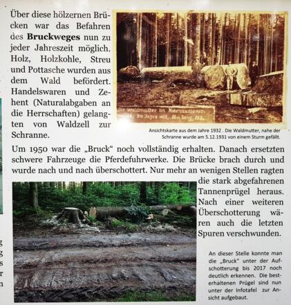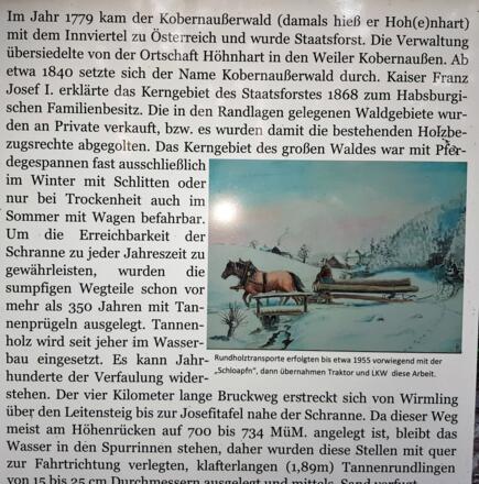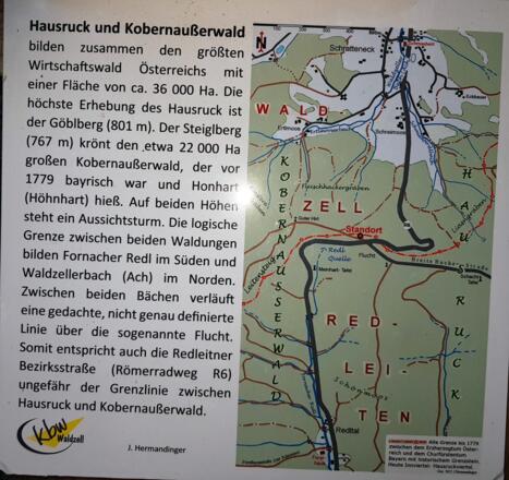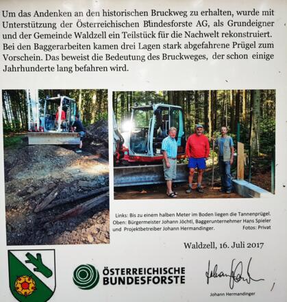 An der Grenze zwischen Redltal und Waldzell, am höchsten Punkt der sogeannten "Flucht" zweigt westliche eine Forststraße in den Koberaußerwald ab. Der Koberanßerwald gemeinsam mit dem Hausruckwald zählt zu den größten zusammenhängenden Waldgebieten in Österreich. Die Forststraße für in einem nur leichten auf und Ab etliche km zum uralten Verbindungsweg von Wirmling in der Gemeinde Waldzell vorbei an der Schranne einer ehemaligen Zollstation zwischen Österreich und Bayern (bis 1779) in die Gemeinde Pöndorf. Mehrere Kilometer dieses Weges waren bis in die 1950ziger Jahre mit Brügeln ausgelegt damit die Furhwerke nicht einsinken konnten. An der letzten noch sichtbaren 'Stelle dieses "Brückenweges" wurde 2017 auf Initiative von Johann Hermandinger von den Bundesforsten "Bruckweg-Denkmal" errichtet.