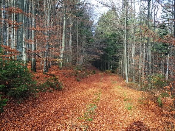 Vorwiegen Forstraßen einige hundert Meter Steige am Rückweg über den Leitensteig.