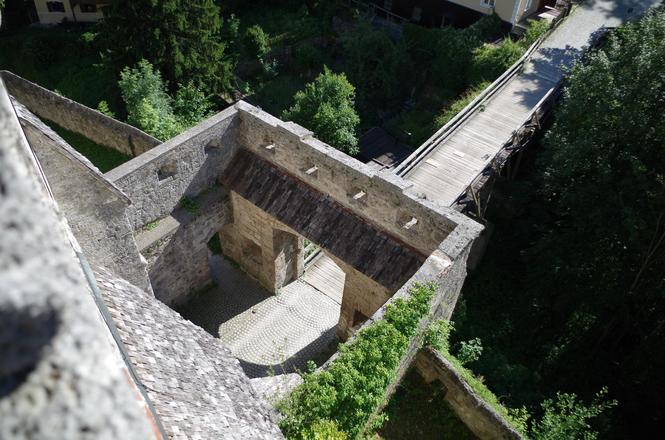 Auf einer geographisch günstigen Anhöhe, direkt am Ponlachgraben, thront über der Stadt die mittelalterliche Burg. Ihre strategische Lage auf dem Geländesporn und ein tiefer Halsgraben erschwerten eine Eroberung. Zusätzlich waren früher beide Burgtore nur über Zugbrücken passierbar.