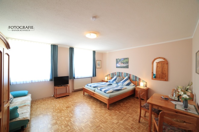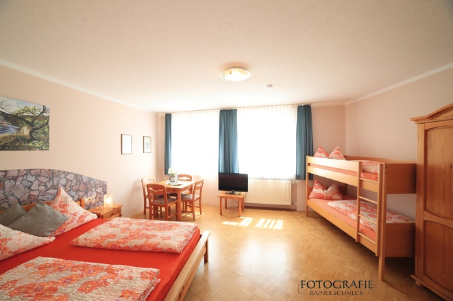 6 Doppelzimmer (2 davon Familienzimmer mit Etagenbetten für bis zu 4 Personen), alle mit Bad/Du/WC, Fön, WLAN, TV und einer kleinen Sitzecke. Die Zimmer befinden sich im zweiten Stock.