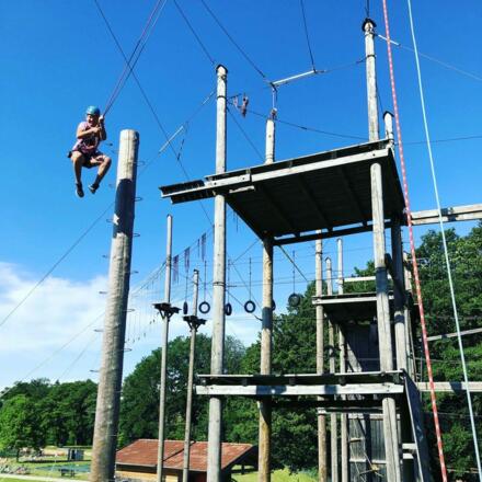 Setze neue Grenzen! Bewege dich aktiv durch unsere Parcours, die Spaß für die ganze Familie bieten. Zusammenarbeit und gegenseitiges Vertrauen stehen bei uns ganz weit oben. Der absolute Kick ist unser Sprungturm. Bei knapp 5 Metern „freiem Fall“ wird dein Puls in die Höhe schnellen. Traust du dich?