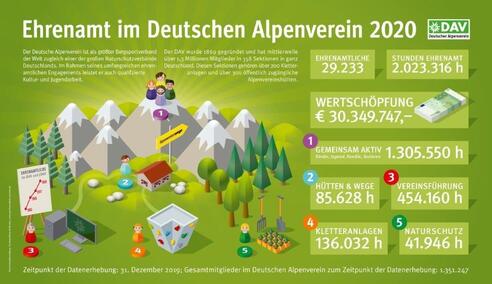 Bereits im Jahre 1869 gründeten deutsche und österreicherische Bergsteiger den Deutschen Alpenverein als „bildungsbürgerlichen Bergsteigerverein“. Bis heute wuchs der DAV zum größten Bergsportverein der Welt und einem der großen Sport- und Naturschutzverbände Deutschlands mit 1.184.507 Mitgliedern in 357 selbstständigen Sektionen und einer Stiftung. Hier finden Wanderer, Sportkletterer, Naturschützer, Hüttenwirte, Familiengruppen, Skibergsteiger, Expeditionsteilnehmer und Kulturliebhaber Gleichgesinnte. Sie verbindet nicht nur die Freude an der Bewegung in der Natur und die Lust auf Gipfelerlebnisse, sondern auch das gemeinsame Ziel, die einzigartige Bergwelt für kommende Generationen zu erhalten. Beim DAV, einem ehrenamtlich geführten Verband, zählt neben politischer und ideologischer Unabhängigkeit vor allem die große Fachkompetenz in allen Bereichen des Alpinismus.
