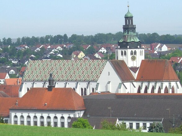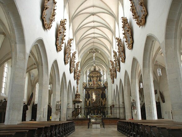Die ehem. Klosterkirche, eine mächtige, kreuzförmig angelegte, dreischiffige Basilika stellt architektonisch den „Inbegriff der Gotik in Bayerisch-Schwaben“ dar. Die Ausstattung wird jedoch heute im Wesentlichen vom Barock beherrscht.