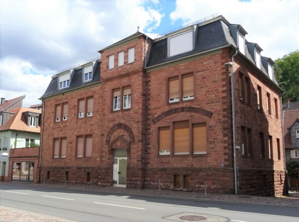 Der zweigeschossige Sandsteinquaderbau mit Mansardwalmdach, überhöhtem Mittelrisalit und flachem Pyramidendach, wurde 1904 eingeweiht. 1938 wurde durch die Nationalsozialisten vor allem der östliche Teil der Synagoge mit den Sakralräumen zerstört und als reines Wohnhaus wiederaufgebaut. Heute erinnern nur noch einzelne, kleine Elemente an das frühere Aussehen. Nach der Deportation der letzten Miltenberger Juden 1942 profanisiert, dient das Gebäude heute als privates Wohnhaus.