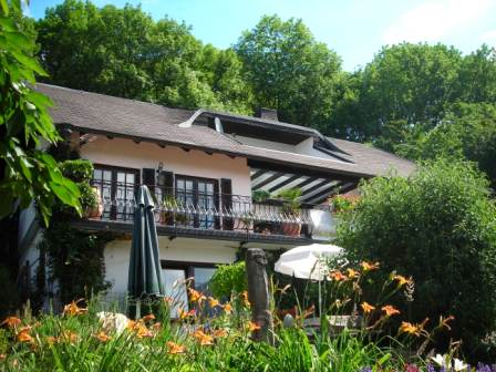 Schöne Ferienwohnung in herrlicher sonnieger und ruhiger Lage am Südhang, ca. 60 qm, Parterre, für 2 - 3 Personen mit großem mediterranen Garten und großer Sonnenterrasse. Gut eingerichtet mit seperater Küche, Wonzimmer mit Schlafcouch und Essecke, großes Schlafzimmer, Flur, Bad mit Wanne, zwei Waschbecken und Toilette. Parkplatz direkt vor der Wohnung, TV, Bett- und Tischwäsche, Bade- und Handtücher, Küchentücher, Putz- und Spülmittel vorhanden.
