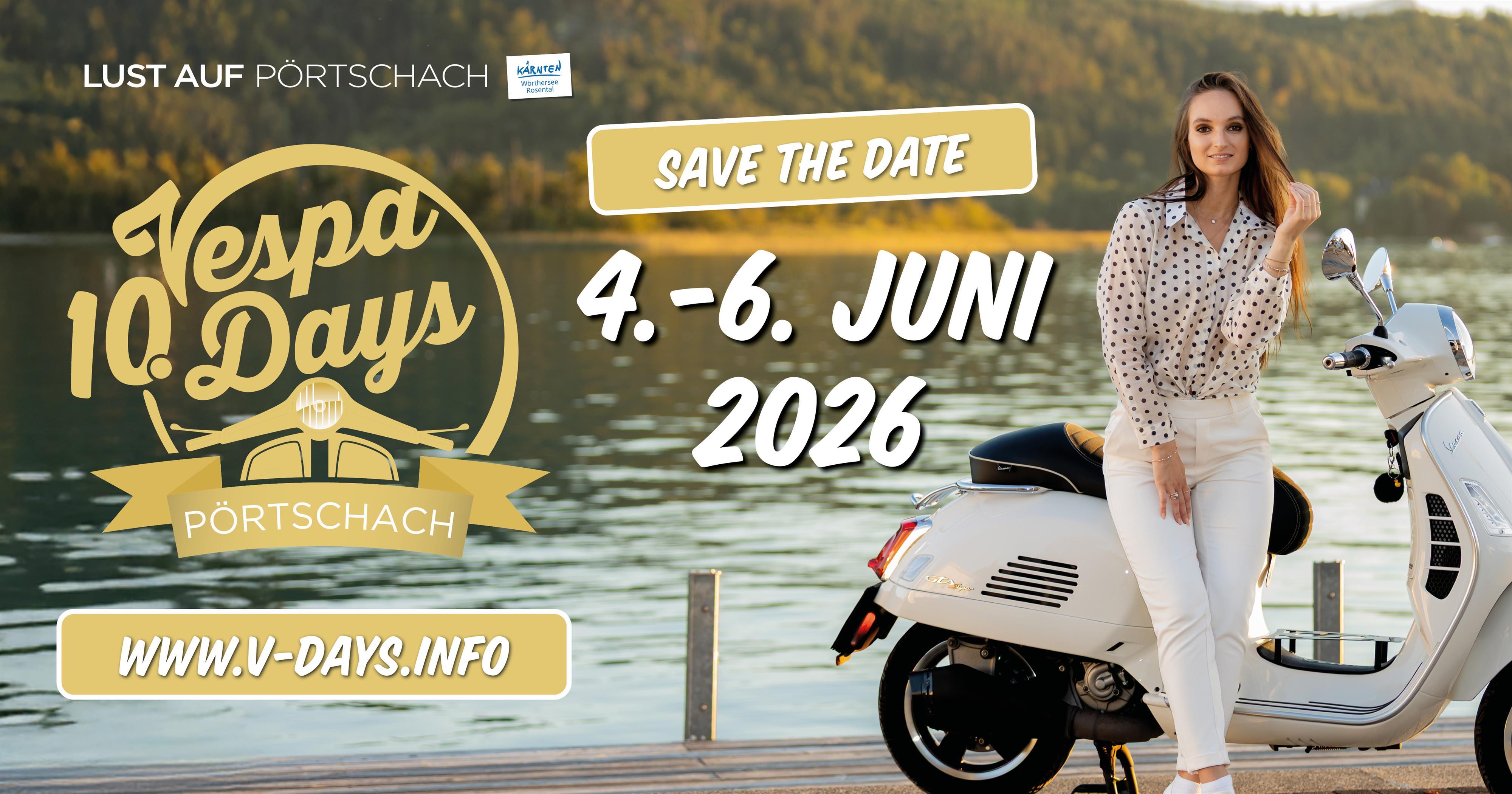 Bei den Vespa Days in Pörtschach treffen sich Scooterliebhaber aus aller Welt vor der atemberaubenden Kulisse des türkisfarbenen Wörthersees. Seid dabei! Werdet Teil dieses großen Spektakels und erlebt den Vespa-Kult mit allen Sinnen, wenn es 2026 wieder heißt: ALLES VESPA!