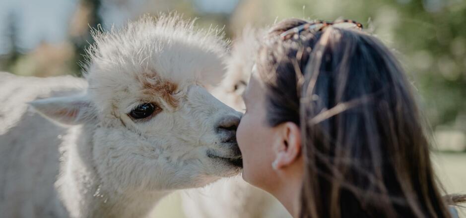 Die Alpakas werden "persönlich" vorgestellt und nach dem Kennenlernen gehalftert - dann beginnt die Tour.