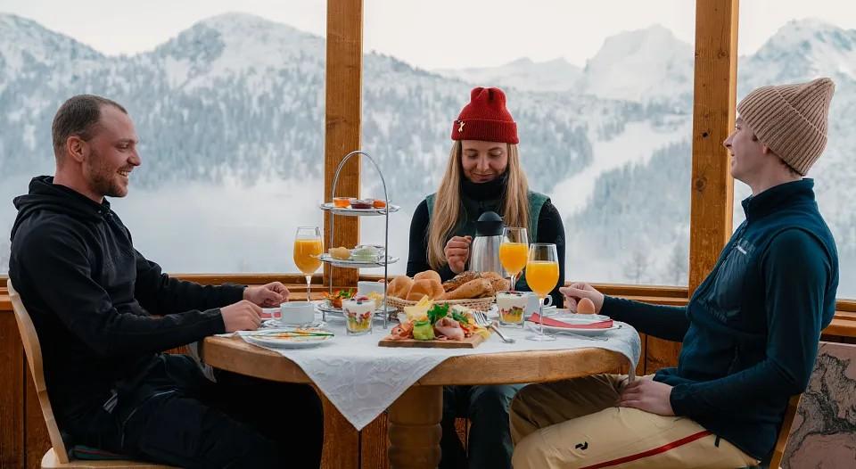 Auch diesen Winter wieder doppelt genießen: Jeden Sonntag von 8:30 bis 10:30 Uhr beim Bergfrühstück auf der Gamskogelhütte!