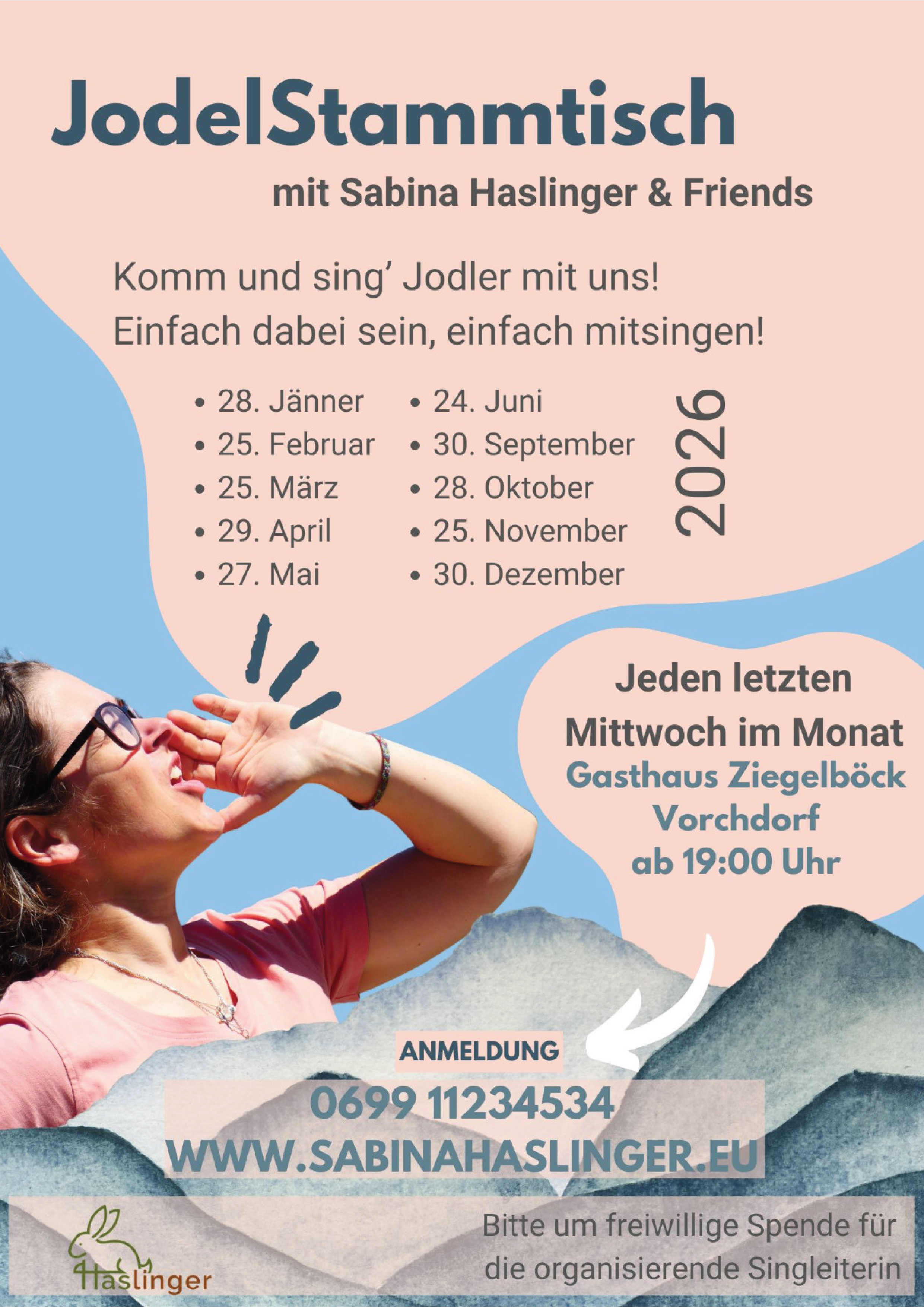 Jeden letzten Mittwoch im Monat kannst du beim Jodel Stammtisch von Sabina Haslinger teilnehmen.