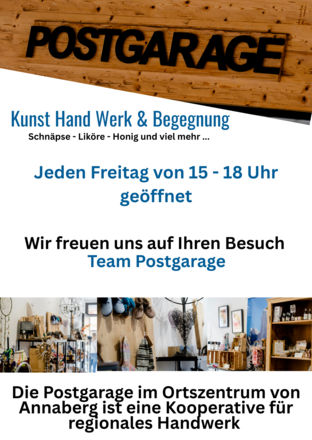 Erleben Sie, wieviele Kreative es in und um Annaberg-Lungötz gibt und besuchen Sie die Postgarage Annaberg. Finden Sie sinnvolle Geschenke, Handarbeiten und Deko, mit der Sie Menschen aus der Region unterstützen.