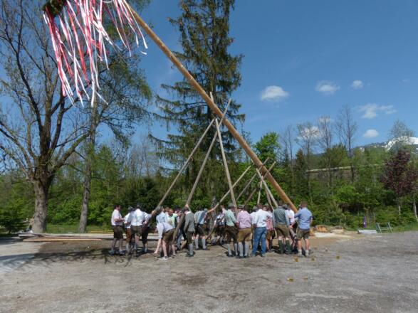 Mit den Festschützen Bad Vigaun und dem Trachtenverein d'Schmittenstoana wird ganz traditionell der Maibaum mit dem Pferd eingefahren, geschmückt und mit Maibaumstangen aufgestellt.