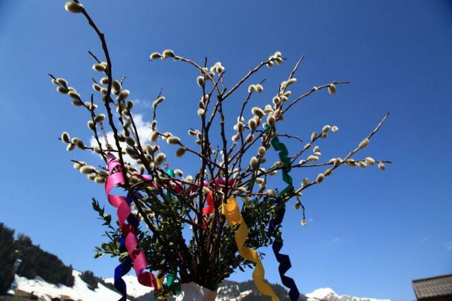 Palmweihe am Dorfplatz und Festgottesdienst