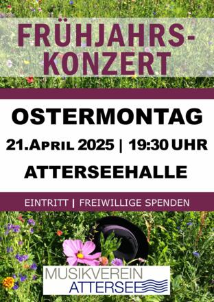 Am Ostermontag, dem 6. April 2026, lädt der Musikverein Attersee herzlich zum traditionellen Frühjahrskonzert in die Atterseehalle ein. Die Besucherinnen und Besucher dürfen sich auf ein abwechslungsreiches musikalisches Programm und einen stimmungsvollen Konzertabend freuen, der den Frühling klangvoll willkommen heißt. 🎶🌷