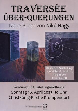 Die Malerin Niké Nagy beschäftigt sich in ihrer Ausstellung mit den Themen Migration, Übergänge, Bewegung, Vertreibungen, Resonanz und Vibration. Mit ihren Bildern verarbeitet sie Eindrücke aus dem Zeitraum 2021-2022, die sie sehr berührt und auch nachdenklich gestimmt haben: der Krieg in der Ukraine, die Migration, die Krise im Iran, die Veränderungen in der Natur, die Auswirkungen auf die Flüsse und das Wasser, sowie das Spiel mit Schatten und Licht. Ihre Arbeitsweise ist figurativ und leicht abstrakt. Während sie beim Abstrakten ihrem Instinkt folgt und Acryltechnik anwendet, verändert sie beim Figurativen das Reale durch Ölmalerei, womit eine bessere Tiefenwirkung sichtbar wird.
