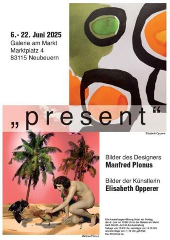 Von 6. bis 22. Juni 2025 zeigt die Galerie am Markt in Neubeuern Bilder des Designers Manfred Plonus sowie Bilder der Künstlerin Elisabeth Opperer.