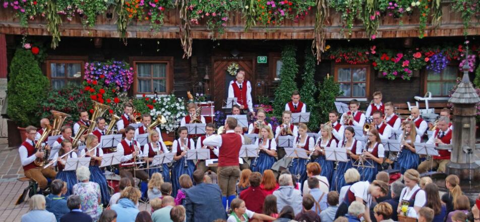 Im Sommer findet jeden Mittwoch das traditionelle Platzkonzert - mit Aufmarsch ab dem Hotel Salzburger Hof - statt.