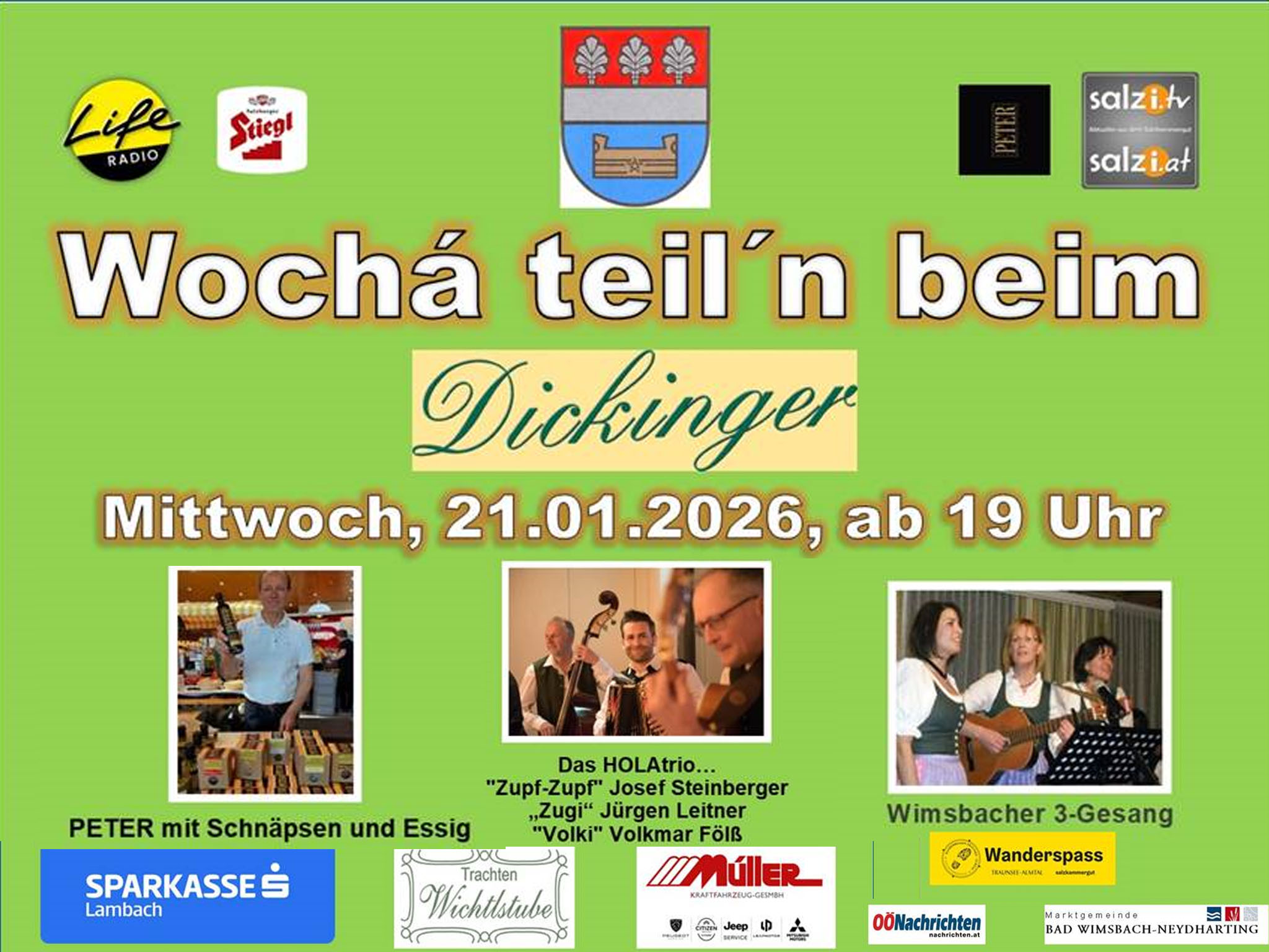 Herzlich Willkommen zum Wochá teil´n beim Dickinger!