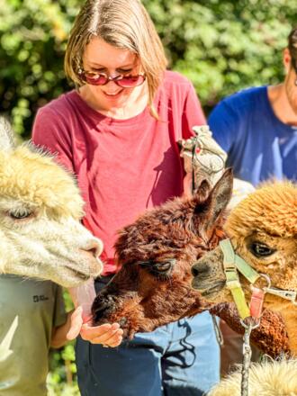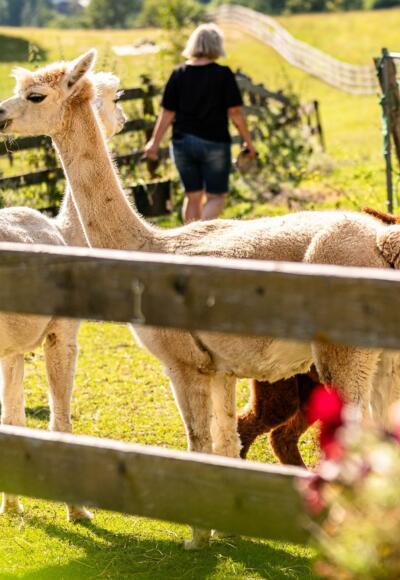Taucht ein in die Welt der flauschigen Vierbeiner und erfahrt spannende Details über die Herkunft der Alpakas, die besonderen Merkmale der Alpakawolle und deren Verarbeitung bei der Alpakawanderung!
