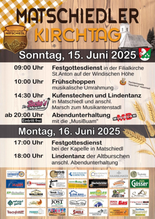 15:00 Uhr Kufenstechen mit Lindentanz und anschließend Abendunterhaltung.