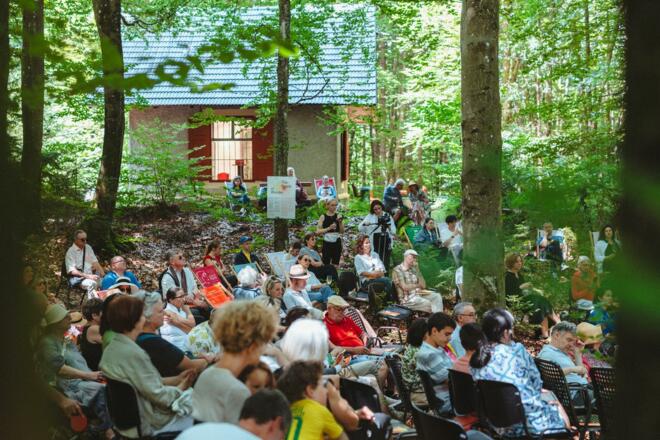 Am Samstag, den 14. Juni ab 11 Uhr macht sich die Künstlerin Toni Schmale die besondere Waldakustik zunutze und entwickelt eine ortsspezifische Installation zu Mahlers Komponierhäuschen in Maiernigg und setzt sich mit der historischen Dimension des Ortes im Sinne des Zuhörens auseinander. Der Musiker und Künstler Tony Wagner erweitert das besondere Setting im Wald rund um das historische Häuschen mit einer Soundperformance für E-Geige.