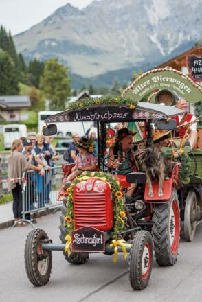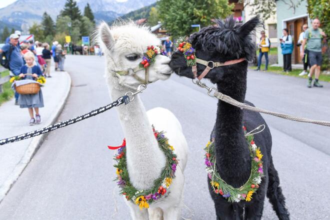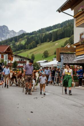 Gegen 13:00 Uhr ziehen die Tiere von den Almen durchs Ortszentrum – ein traditioneller Brauch, der den Sommer auf den Almen ausklingen lässt.
