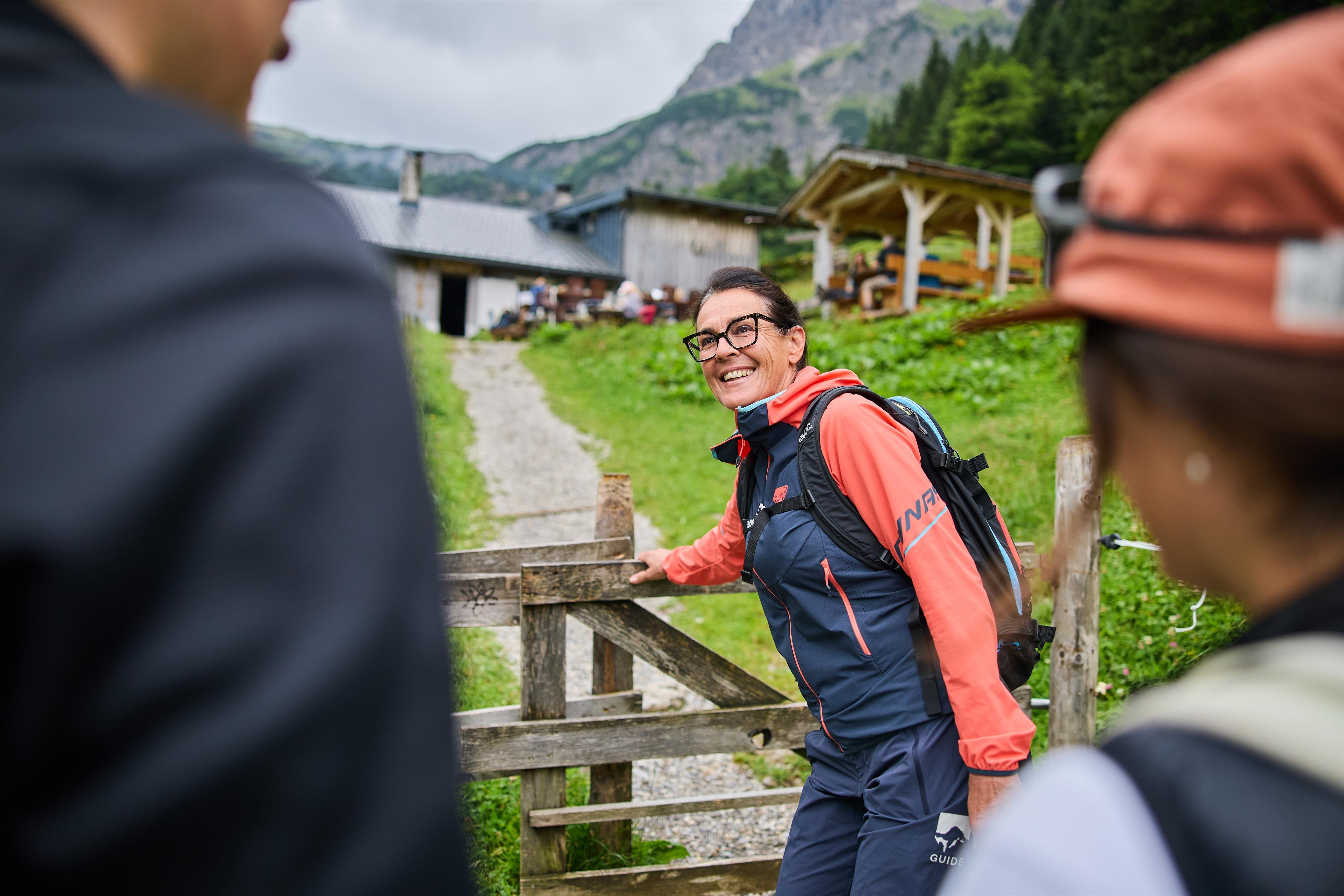 Nach dem Genuss beginnt der Rückweg durch die beeindruckende Bergkulisse von Elfer, Zwölfer und Kleinem Widderstein – ein einmaliges Natur- und Kulinarik-Erlebnis zwischen Tradition, Wanderung und Berggenuss.