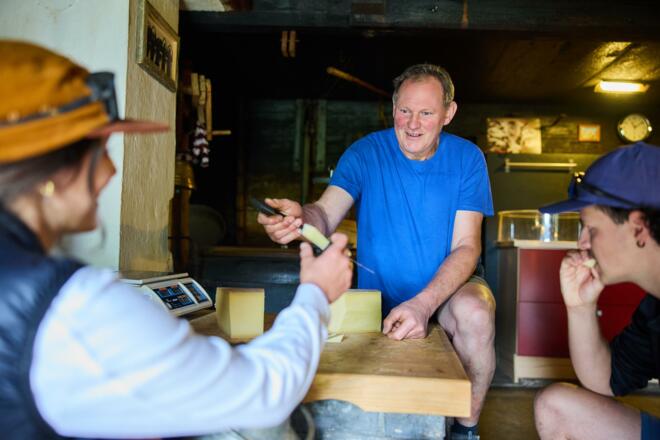 Eine gemütliche Wanderung ins Gemsteltal führt zur urigen Sennküche der Bernhard’s Gemstelalp, wo Bernhard Heim – Landwirt, Hüttenwirt und Senn – sowie sein Team Einblicke in die traditionelle Bergkäseherstellung geben. Verkostet werden kann Käse aus Bio-Milch sowie weitere regionale Spezialitäten.
