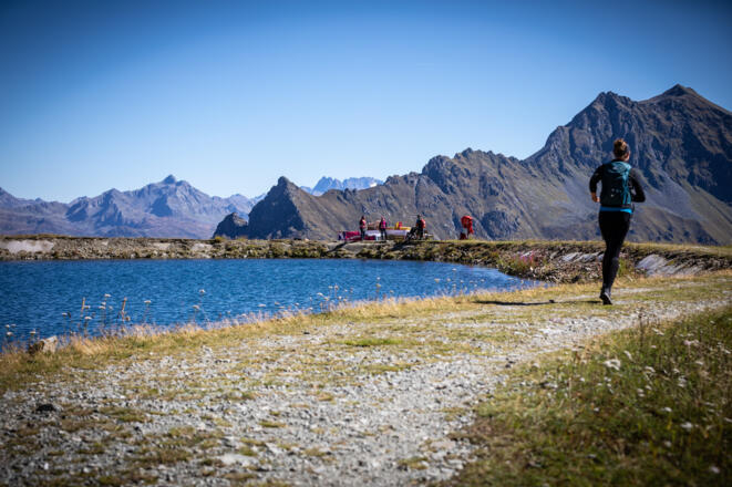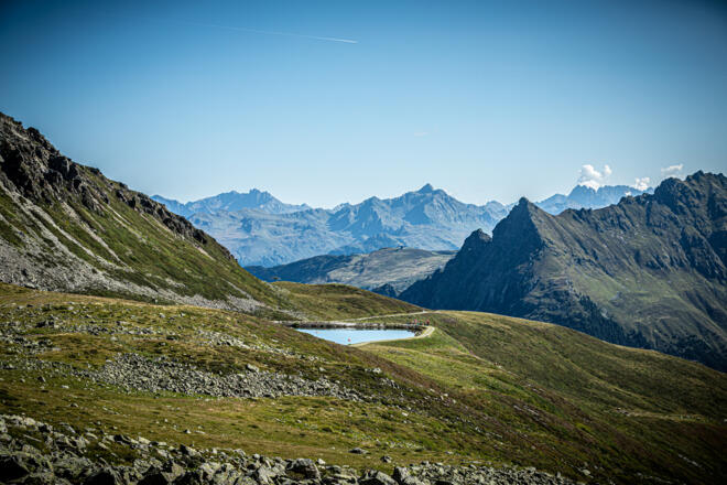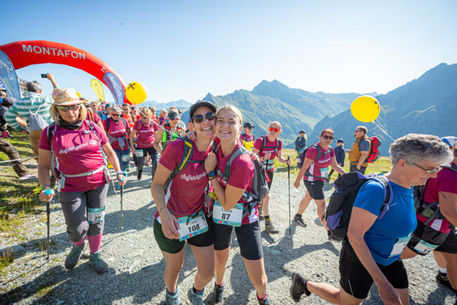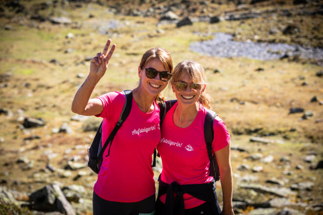 Laufspaß von Grüaß Di bis Grüezi!Trailrunning Ladies und Genuss- sowie Wanderladies erobern den bekannten Schmugglerpfad zwischen Österreich und der Schweiz. Auf 2.130 Metern Seehöhe oberhalb von Gargellen darf Frau die Aussicht und das Panorama genießen und die Schmuggelware in die Taschen packen. Handorgler und Alphornbläser runden das unglaubliche Ambiente ab.