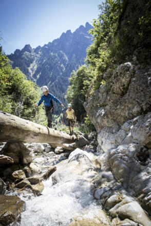 Der Klettersteig Röbischlucht mit einem Schwierigkeitsgrad von B/C ist perfekt für Einsteiger und Kinder. Eine kurze Wanderung führt zum Einstieg des Klettersteigs, welcher sich knapp oberhalb eines Baches durch die Schlucht emporschlängelt. Ein beeindruckendes Naturschauspiel entlang des tosenden Wassers. Der Weg retour führt über die landschaftlich schön gelegene Ronggalpe nach Gargellen.