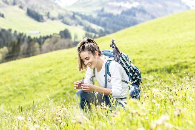 Verena freut sich auf eine erlebnisreiche Wanderung mit einer informativen Weinverköstigung mit der Weinsommelière Elvira Türtscher.