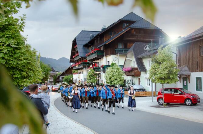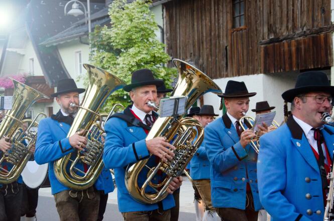 Genießen Sie einen musikalischen Sommerabend am Kirchenplatz mit der Trachtenmusikkapelle Fuschl am See.