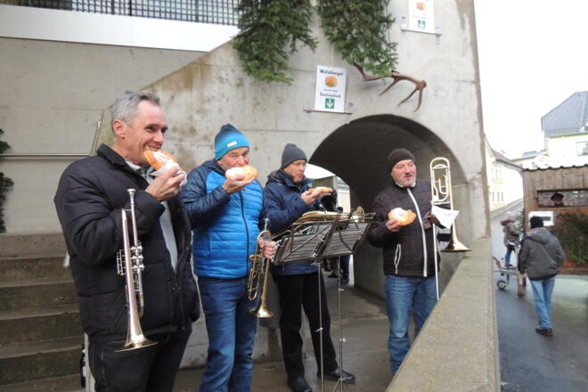 Musikalisch umrahmt wird der Adventmarkt von einem Bläserquartett der Musikkappelle Sarleinsbach.